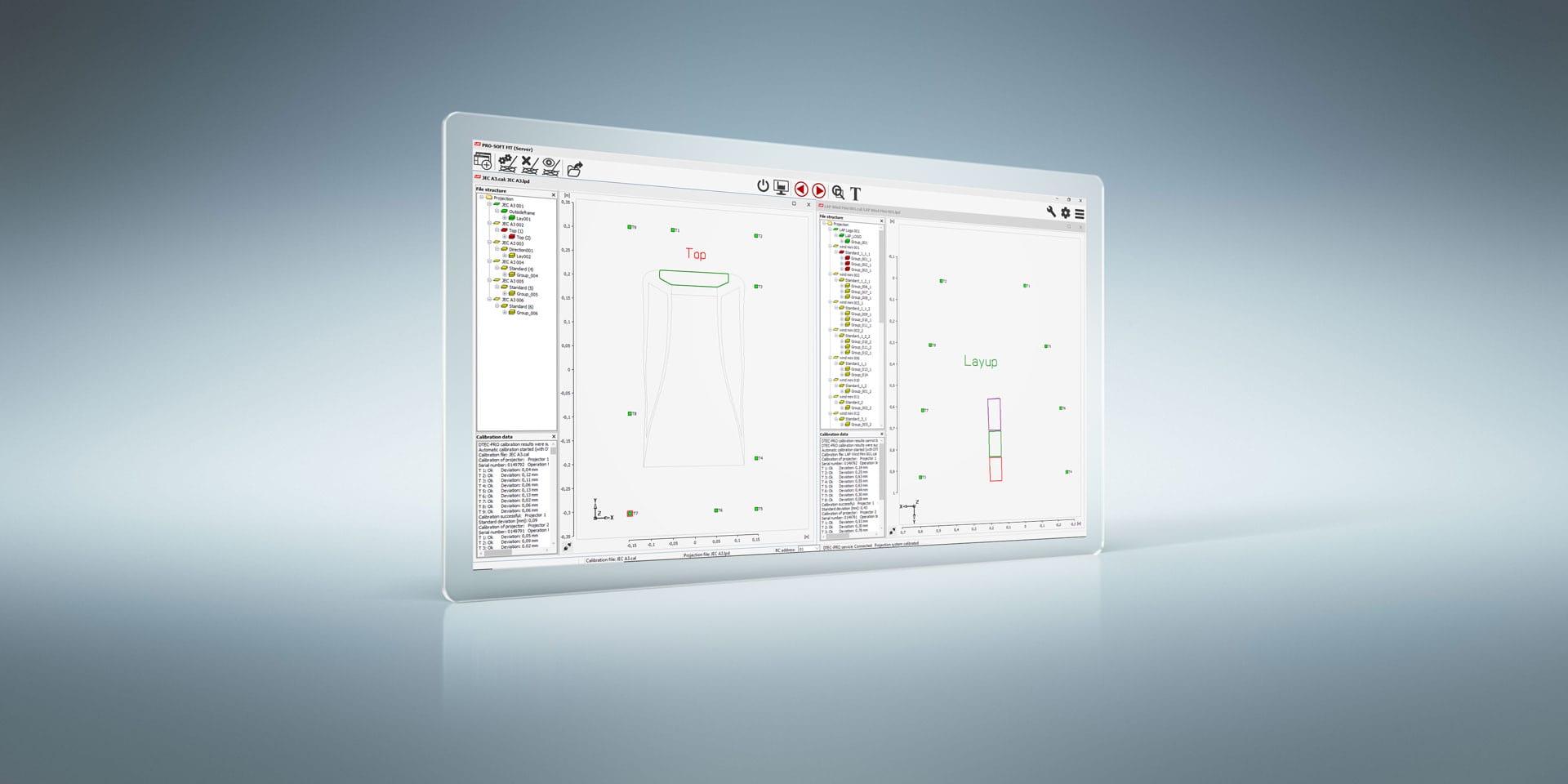 如果存在位置偏差,会自动启动 CAD-PRO 激光投影仪校准,如有必要,还会调整投影。