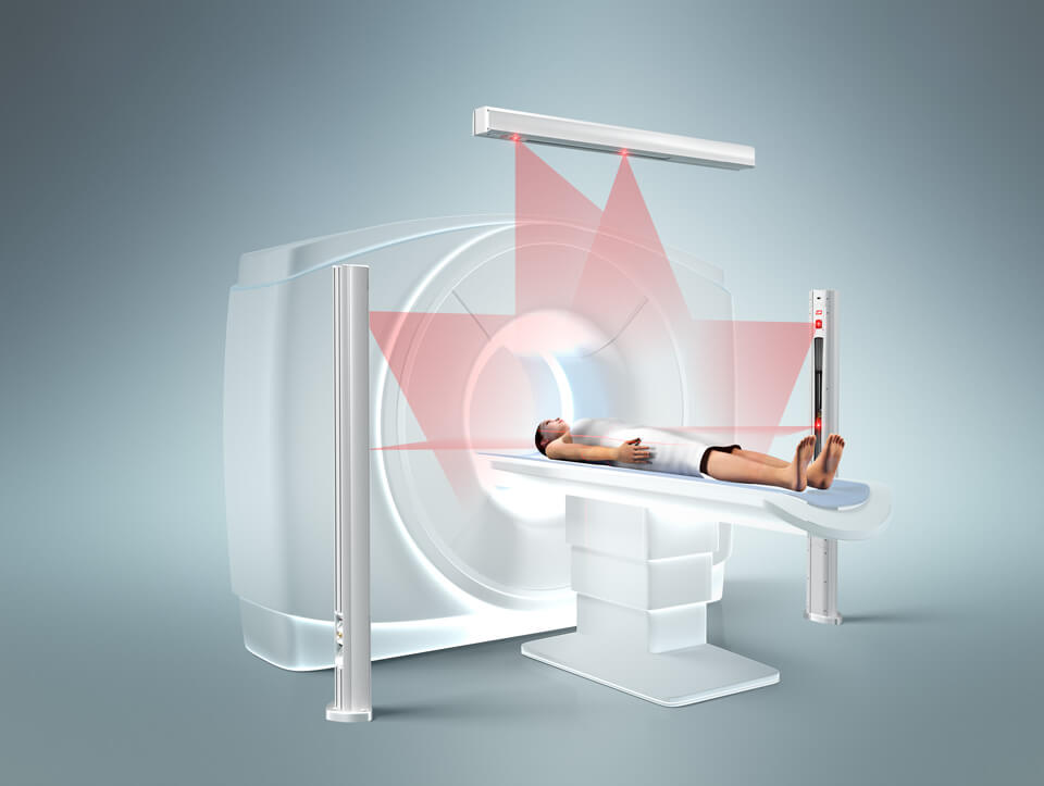 为了精密对齐患者并轻松标记,您可以移动矢位线。横向和冠状体平面通过固定激光灯投射。